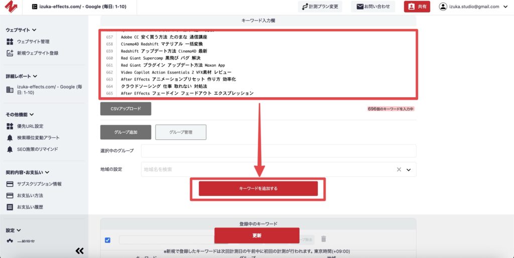 キーワードの入力が終わったら「キーワードを追加する」をクリックします。