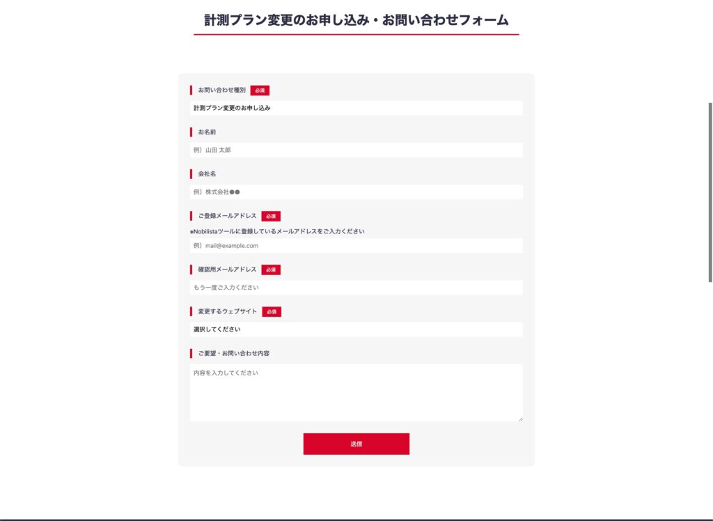 入力例:現在「毎日計測」プランにしていますが、「月4回計測」プランへの変更をお願いします。
