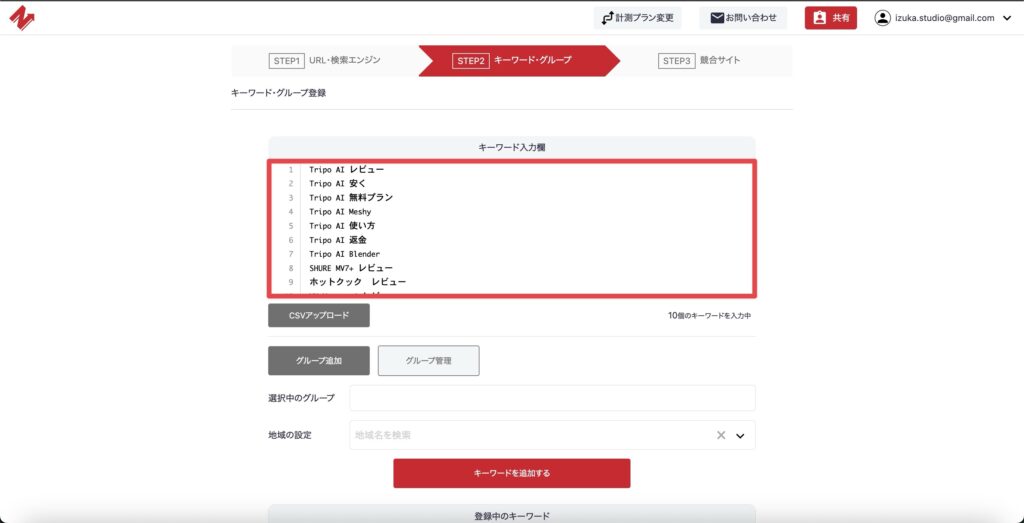 キーワードの追加もすぐにできますし、