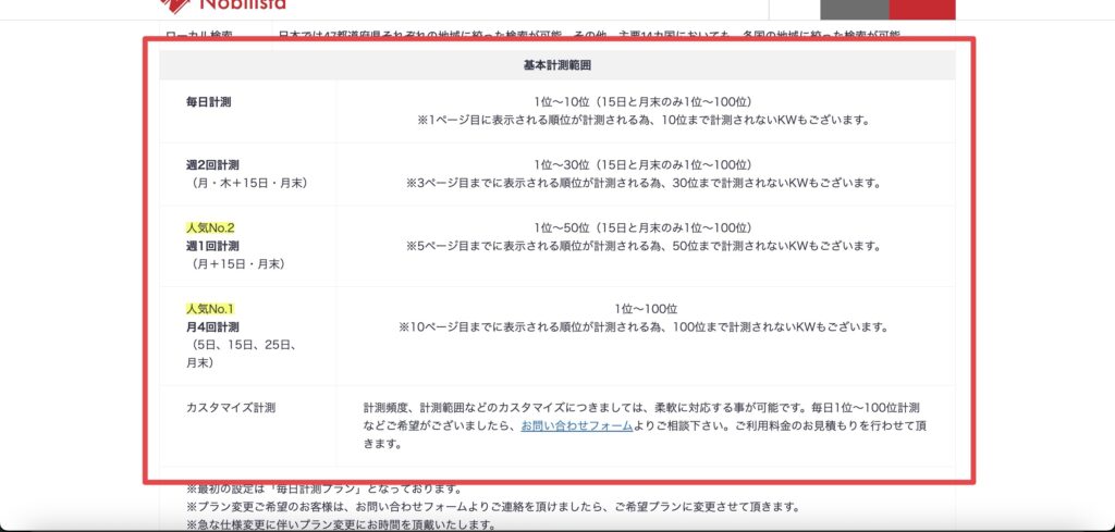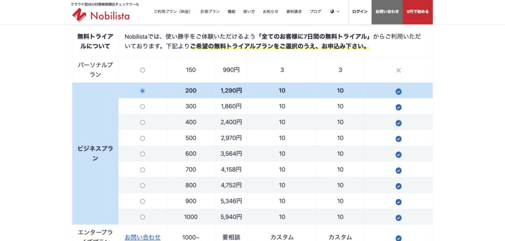 Nobilistaの料金は登録するキーワード数に応じて変動する仕組みで、
