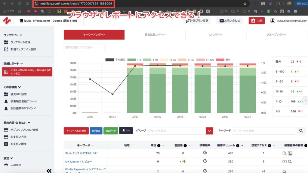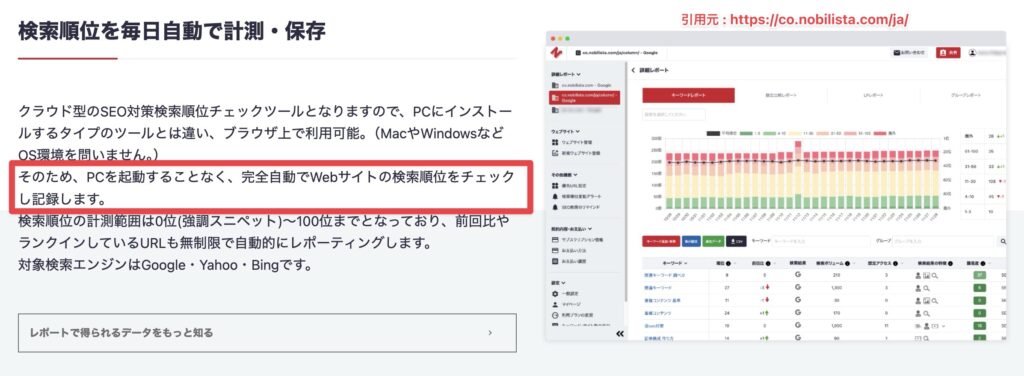 - Nobilistaは日本産のクラウド型検索順位チェックツール