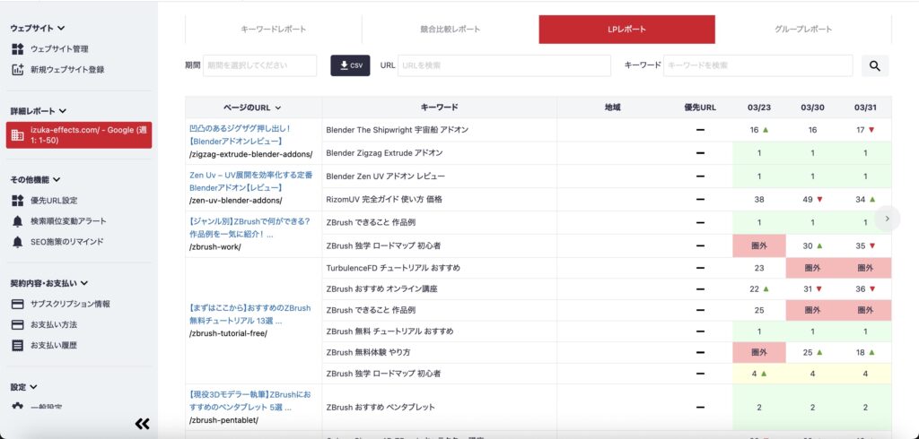 さらに前回の計測からどのぐらい順位が変動したかも追えるので、