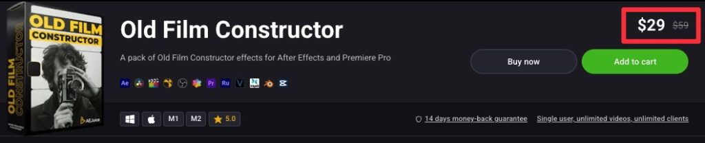 Old Film ConstructorはAE Juiceのバンドル製品、I Want It All Bundleに含まれますのでこちらを買った方がコスパが良くておすすめです。