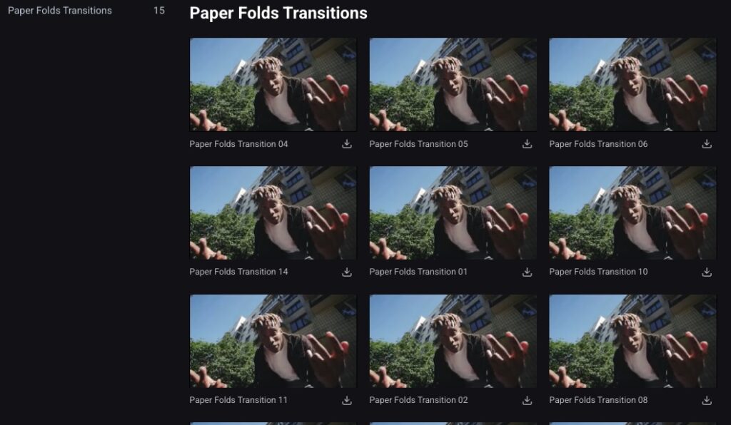 After Effects、Premiere Pro、DaVinci Resolve対応の「Paper Folds Transitions」は、