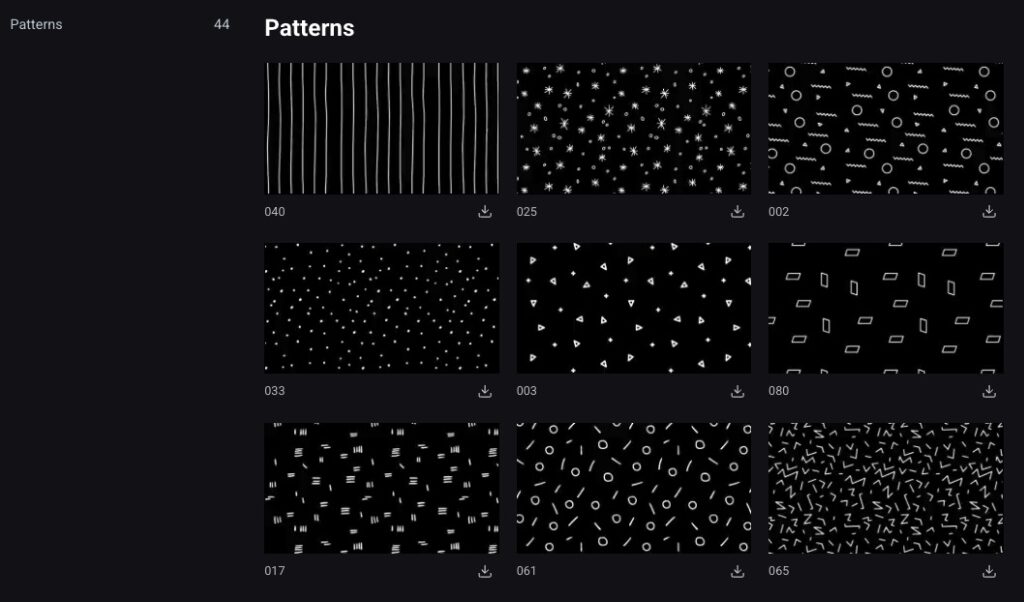 - Patternsは、様々なパターンや模様のイメージ素材が収録された、透過素材として使えてカラー変更も可能なパック!