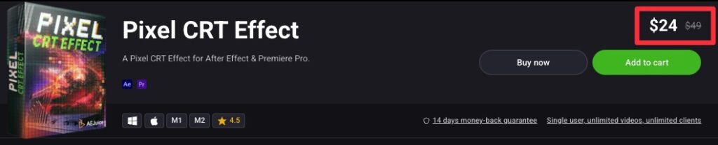 Pixel CRT EffectはAE Juiceのバンドル製品、I Want It All Bundleに含まれますのでこちらを買った方がコスパが良くておすすめです。