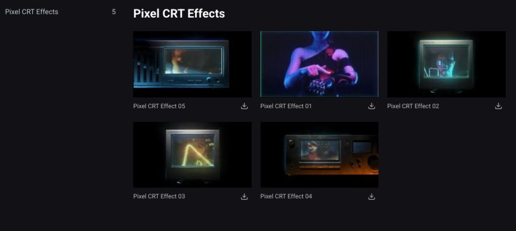 - Pixel CRT Effectは、古いブラウン管のテレビで見たようなエフェクトを与えて、映像にレトロ感を出せるパック!