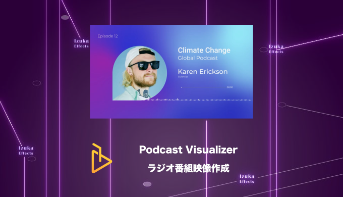 - Podcast Visualizerは、ラジオ用の映像を作れるテンプレートパックで、ロゴやテキスト、カラーを変えて自分なりの放送用映像が作れるパック!