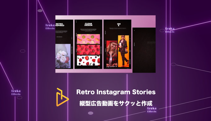 - Retro Instagram Storiesは、Instagramのストーリーで使える縦型動画テンプレート集で、知識がなくても差し替えるだけでサクッと広告動画が作れるパック!