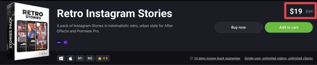 あなたのストーリーを際立たせたいなら、ぜひこのパッケージをチェックしてください。 引用元:商品ページ「Retro Instagram Stories」より解説を要約