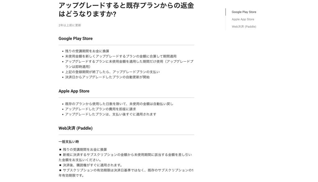 ≫ヘルプセンター - アップグレード時の返金について