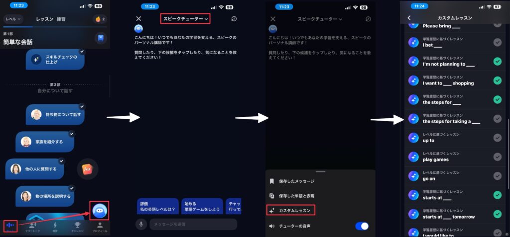 続いて「スピークチューターのカスタムレッスン」