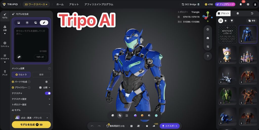 Tripo AIは現時点では、