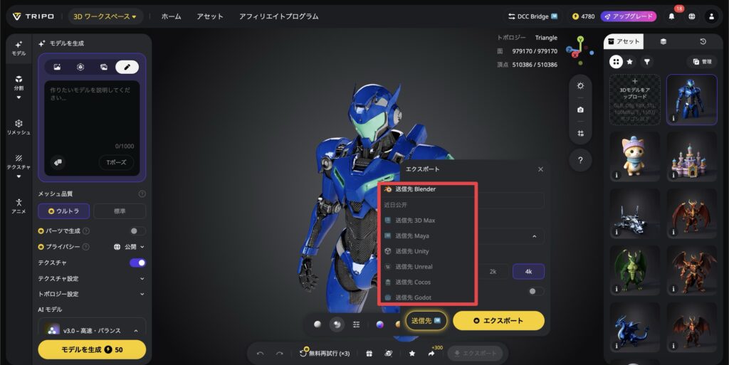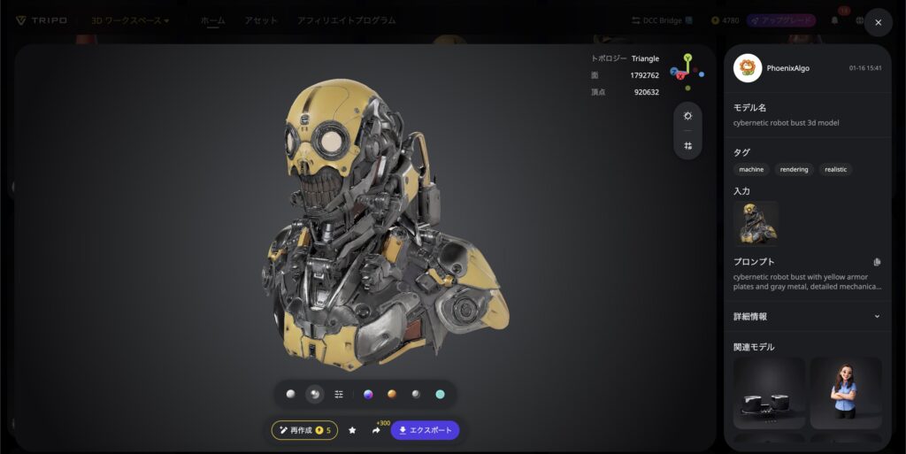 ただしTripo AIの場合は、