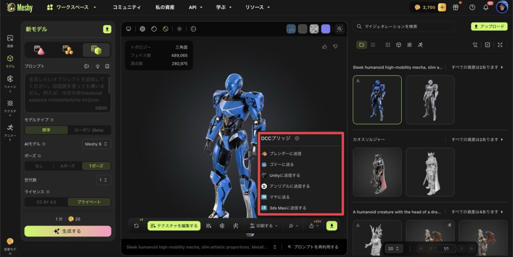 - エクスポートや他ソフト連携、公開モデルDLはMeshy AIが優勢
