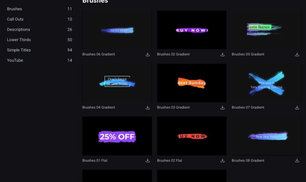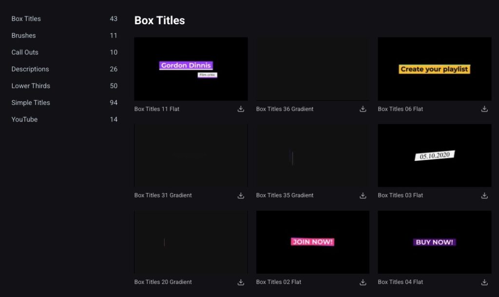 Titlesは、タイトルアニメーションが245種類以上収録された便利なパックです。