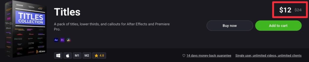 TitlesはAE Juiceのバンドル製品、I Want It All Bundleに含まれますのでこちらを買った方がコスパが良くておすすめです。