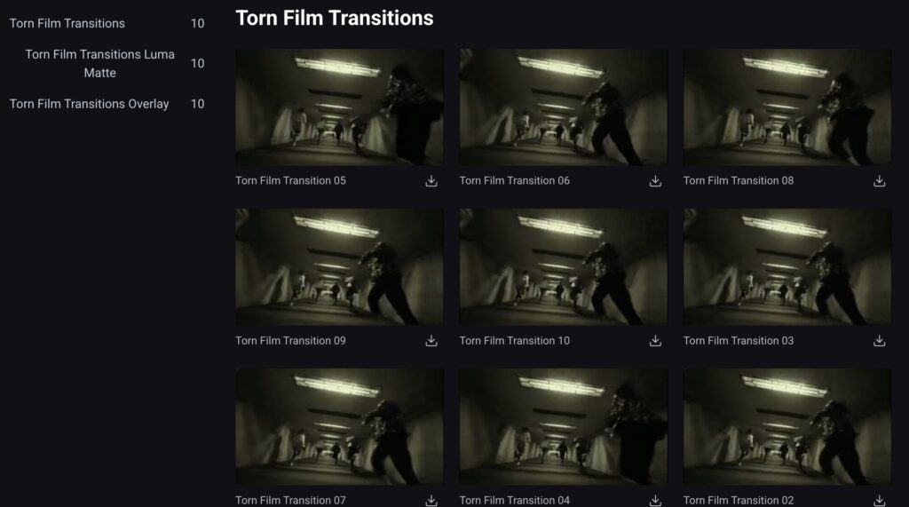 - Torn Film Transitionsは、フィルムを破いて別の映像に行くようなトランジションパック!