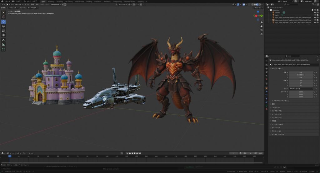 今回はTripo AIの3DモデルをBlenderに送る方法について解説しました。