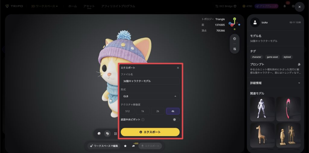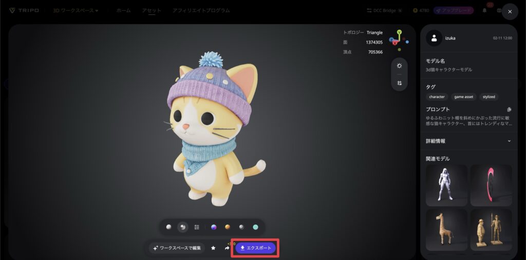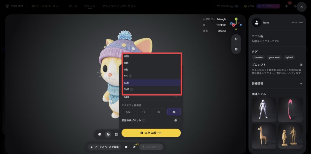 3Dファイルの形式はFBX、OBJ、GLBなどたくさん用意されているので便利ですね。