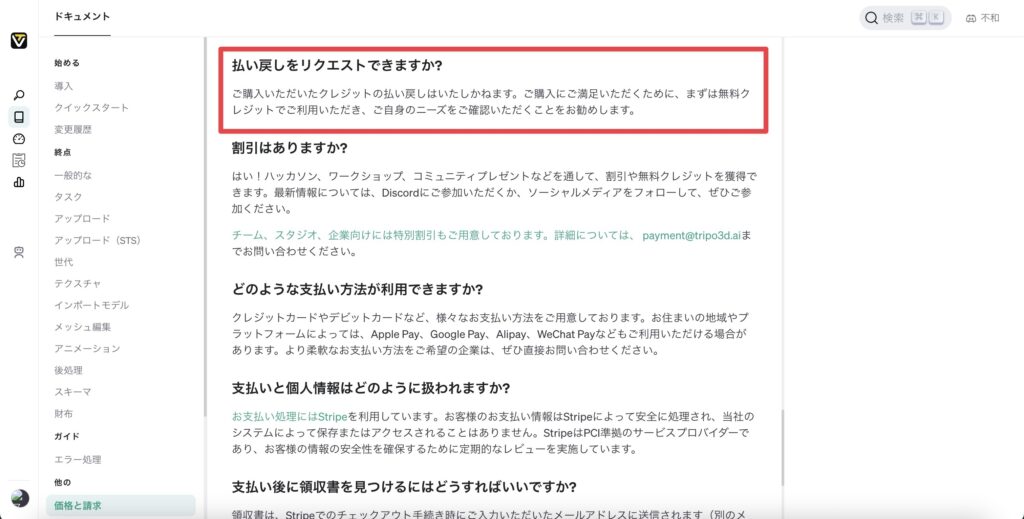 Tripo AI ドキュメントに記載がありました。