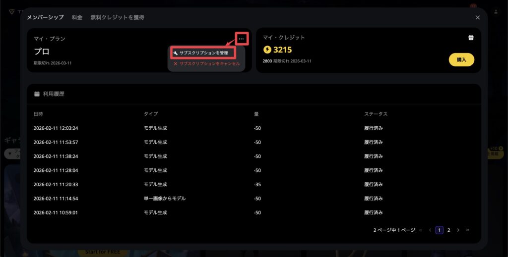 - Tripo AIのサブスクをキャンセルしたい