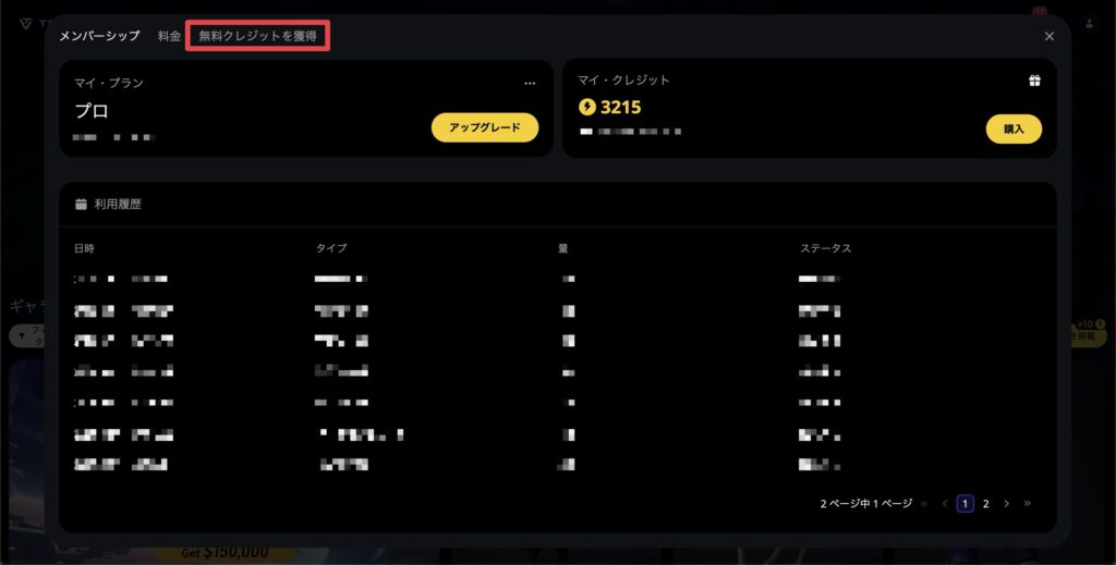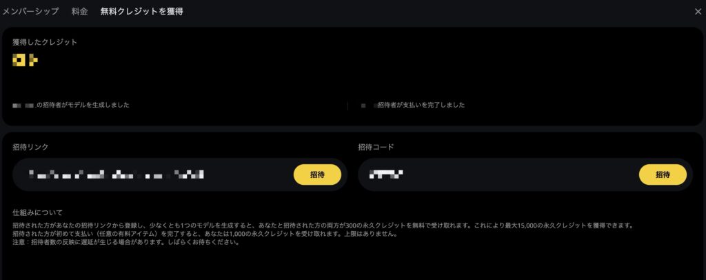 それ以降は招待コードを駆使してクレジットを稼ぐと良いですね。