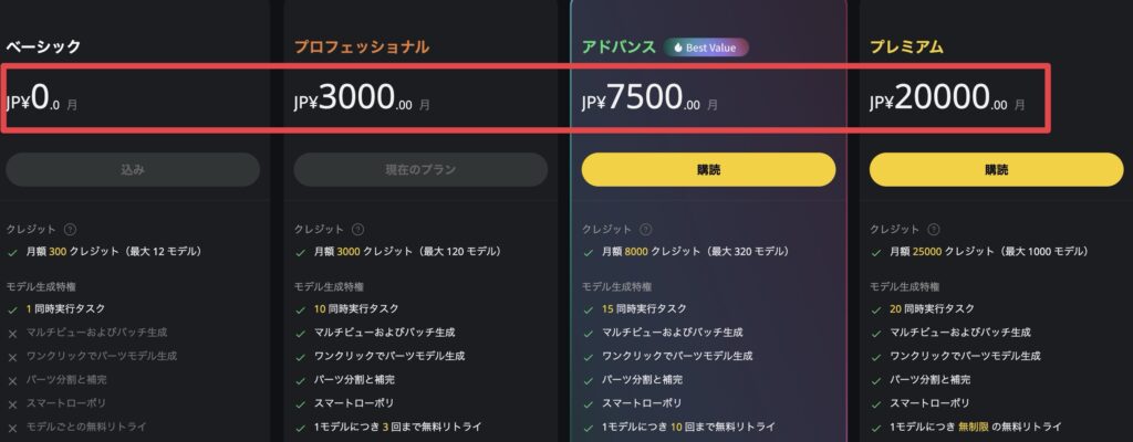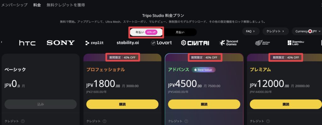 上記の手順で購入すれば損せずTripo AIを利用することができます。