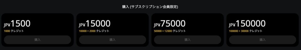 | クレジット数 | 300 | 3,000 | 8,000 | 25,000 |