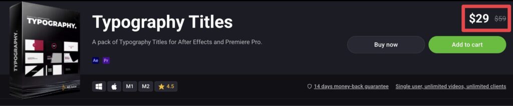 Typography TitlesはAE Juiceのバンドル製品、I Want It All Bundleに含まれますのでこちらを買った方がコスパが良くておすすめです。