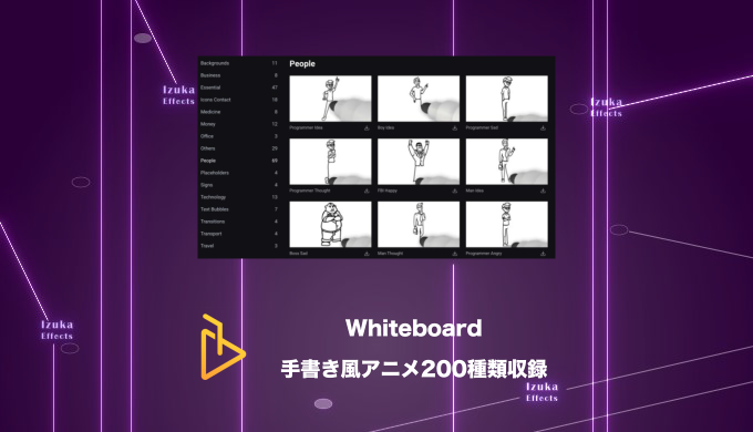 Whiteboardは、200種類以上のホワイトボードアニメーションが収録された便利なパックです。