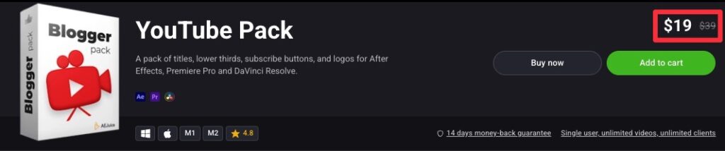 YouTubeパックは、After Effects、Premiere Pro、そしてDaVinci Resolveのすべてに対応しているため、お好みの編集プログラムで動画を編集できます。